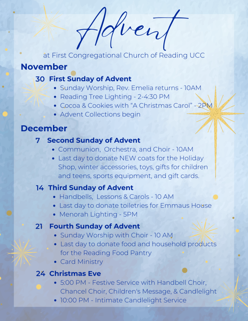 Reach out to the church office at office@churchofreading.org to learn more or be added to the email reminder list.…