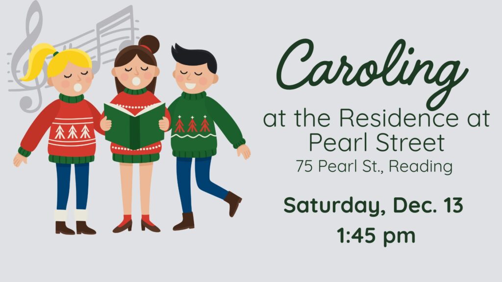 Join us on Saturday, December 13th, at 1:45pm for caroling at the Residence at Pearl Street. Reach out to the church office at office@churchofreading.org or 781-944-0205 for more info.