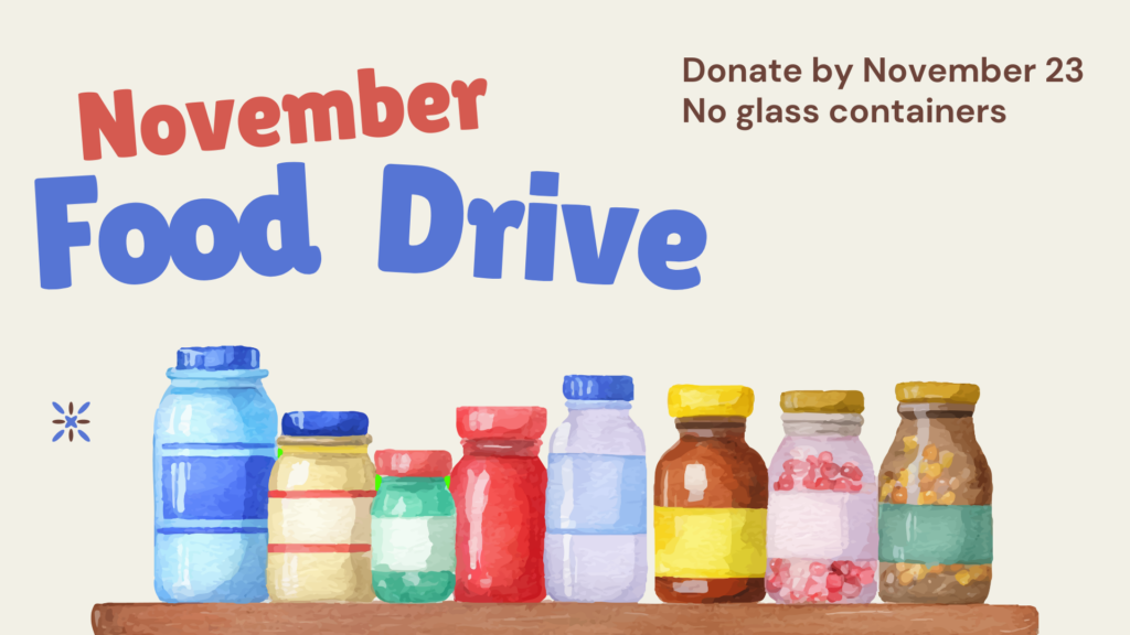 Food Insecurity has been in the news and at the top of our minds, so the timing of our November Food Drive couldn’t be better.