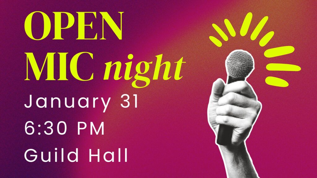 This event is FREE and open to the public; musicians, singers, poets, and audience members of all ages are welcome. Open Mic Night is held right here at the church in Guild Hall. Join in the fun!
